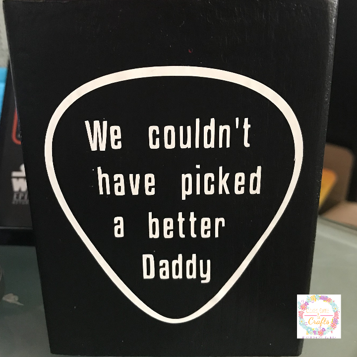 Do you ever see something and think I can make that? Well that is exactly how this project came to be. I happened to see on Amazon a guitar pick engraved that said “we couldn’t pick a better dad.” It was perfect because our daddy loves to play guitar. This Cricut Fathers Day gift is quick and easy (as long as you don’t count the paint drying).