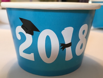 To make the cups special I added 2018 in vinyl with cute graduation hats on my Cricut Maker. No Cricut, no problem! Decorate the cups with stickers or draw/write on them for your party. The cups are the perfect size for a candy bar.