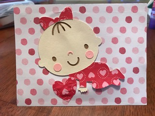 The baby card is for my 2 year old niece who loves her baby dolls more then anything. She is never without one. So I did a baby on the card and added a heart for the baby to hold of course in heart paper. Her card is the only non embossed card because I liked the way the polka dots matched the heart paper.