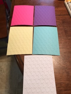 Now for the Valentine’s Day cards! I made all of the cards on 4.25 inches by 5.5 inches cards because that matched the size of my embossing folder that I found with hearts on it. I bought a package of 10 cards and envelopes at Michaels. It’s amazing to me every time how much money I save making my own cards. All of these cards are made with my Cricut Explore and all the images are available in Design Space. I have the monthly subscription of Cricut Access and all of these were available except for the Hugs and Kisses on the teddy bear card, I think the hugs & kisses was about 89 cents because you get a 10% discount if you have Cricut Access. It’s a wonderful subscription to have.