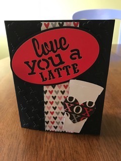 For my husband I found the perfect card to make when I saw the oval that said Love You a Latte. It’s a joke in our house that every time I go to Target I get a latte at Starbucks and he always teases me about it. So I added a coffee mug, that looks a lot like Starbucks and put a heart on it. I used a rectangle to go down the center of the card. It’s perfect and I made the background color black which is his favorite color.